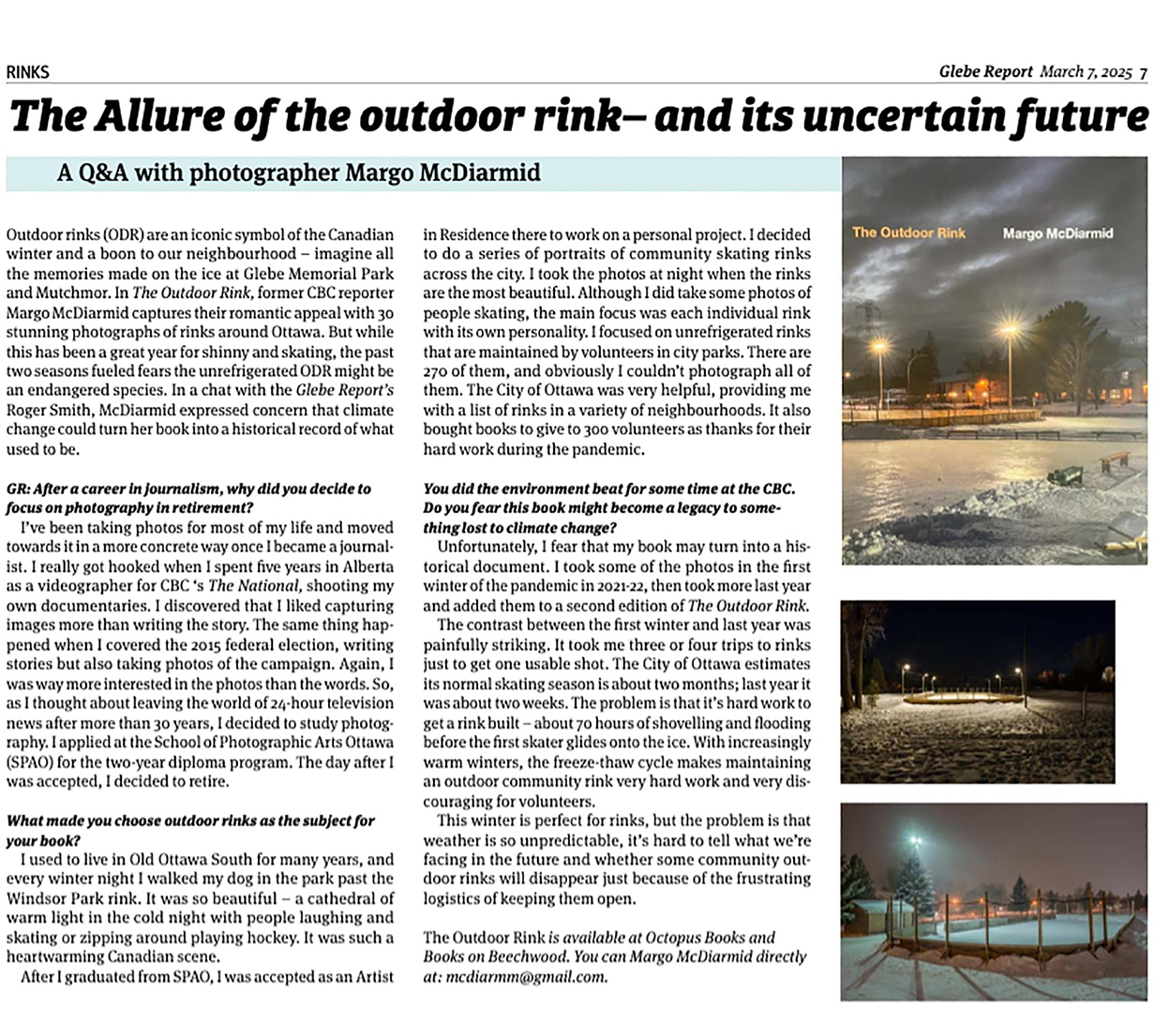 It inspired me to document community rinks in Ottawa. This project captures why each rink is unique and why the volunteers work late into the night to maintain them, many of whom have donated their energy and time for decades.